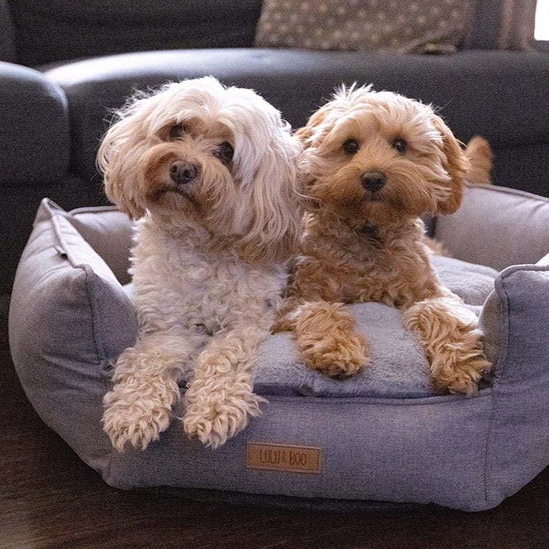 Our favourite bed! Created using a soft grey upholstery-style material & combined with a quilted inner cushion, this is the perfect bed for your pup.